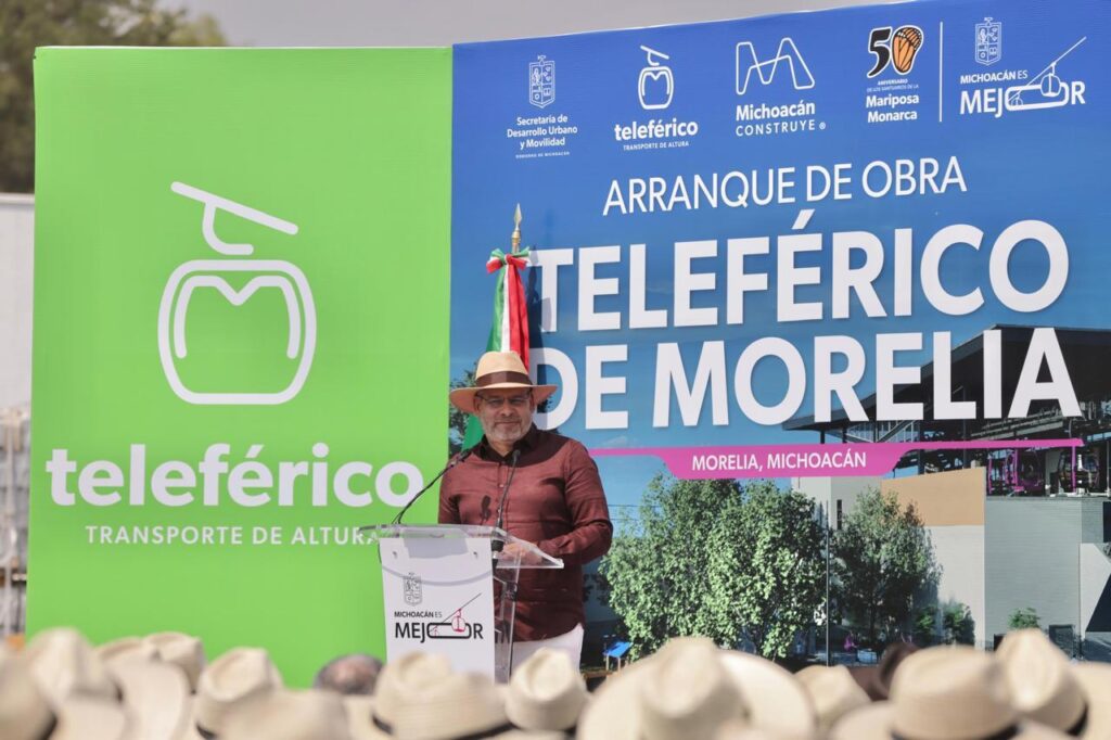 El gobernador subrayó que el teleférico de Morelia, que será 100 por ciento eléctrico, sin emitir emisiones contaminantes, fue diseñado con un doble propósito: beneficiar a las personas que históricamente han sido ignoradas por las políticas de movilidad: estudiantes, trabajadores, mujeres, personas con discapacidad y adultos mayores; pero también como un atractivo turístico..