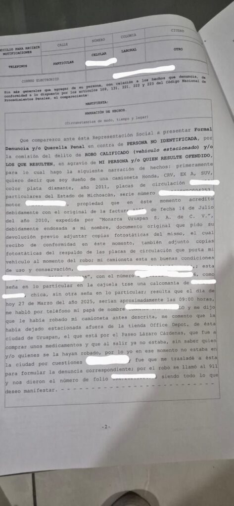 Uruapan, Michoacán – Marzo de 2025 – El diputado local Conrado Paz Torres fue víctima del robo de su camioneta el día de ayer, según informó él mismo a través de sus redes sociales. El legislador detalló que ya interpuso la denuncia correspondiente ante la Fiscalía General del Estado, con el objetivo de que se realicen las investigaciones necesarias para dar con los responsables.