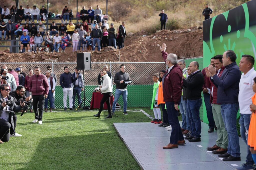A través de 41 canchas de fútbol 7, niñas, niños y jóvenes le dicen no al delito con sitios adecuados para practicar deporte, tener una sana convivencia y un mejor futuro.