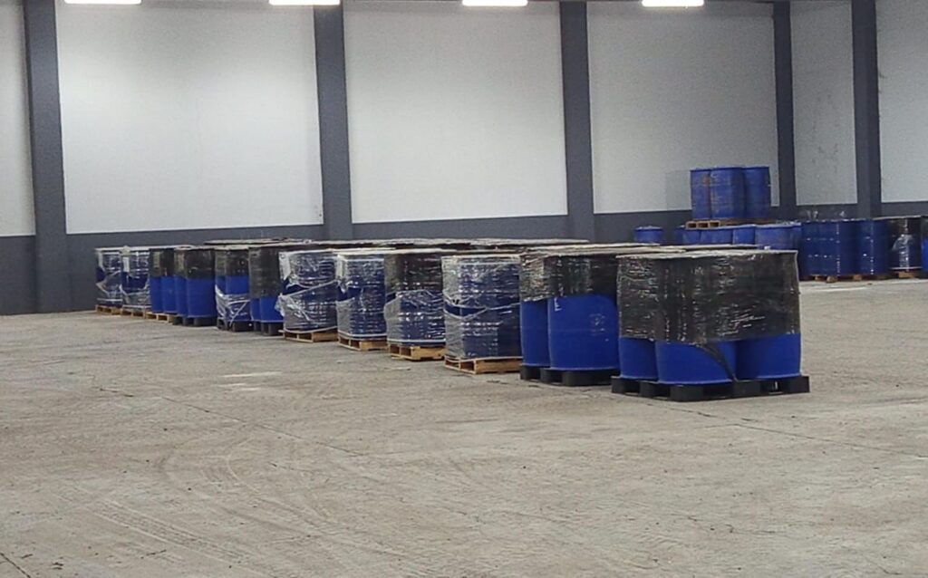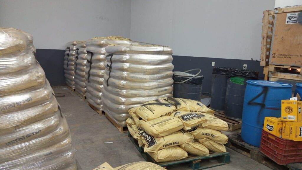 Durante la ejecución de las órdenes de cateo, las cuales se llevaron a cabo en cumplimiento a una carpeta de investigación, también se aseguraron 44 tambos con 200 litros de metilamina cada uno, con un estimado de 8,800 litros de precursores químicos, así como material diverso para la elaboración de drogas sintéticas.