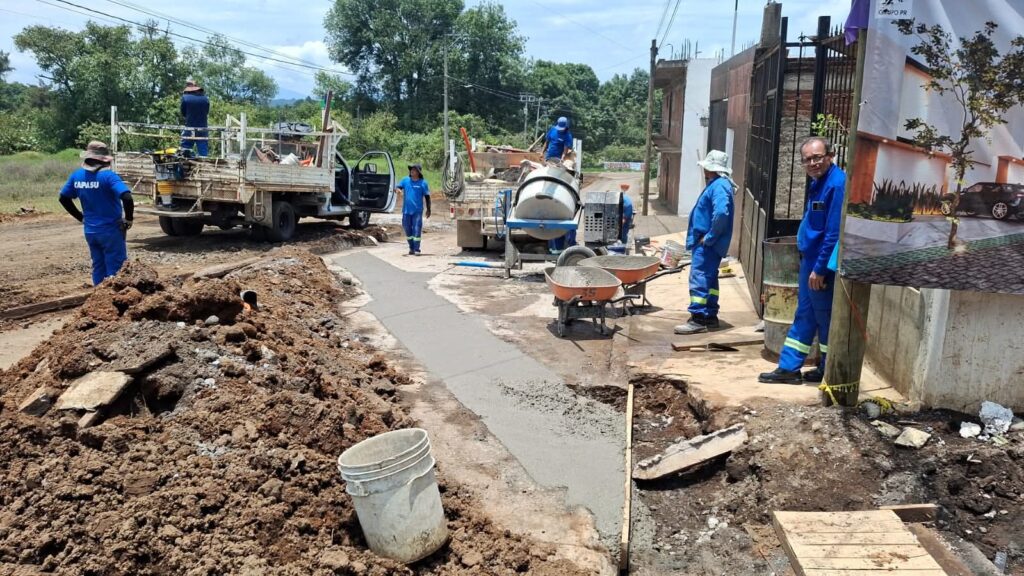 Asimismo, en la calle Lázaro Cárdenas, colonia Emiliano Zapata, se concluyó la aplicación de 2.5 metros cúbicos de concreto tras finalizar la instalación sanitaria.