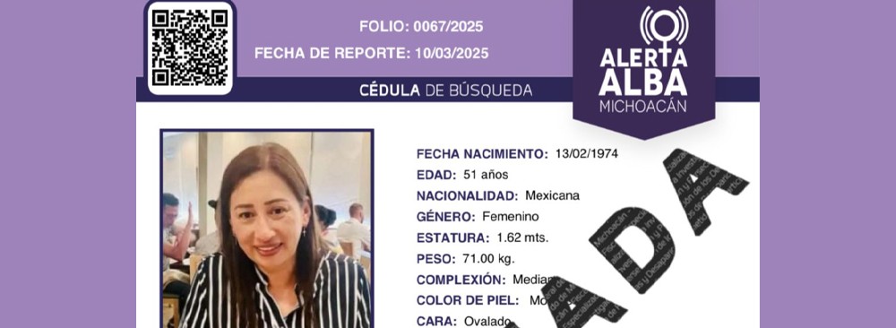 Por lo anterior, fue presentada una denuncia, dándose dio inicio a los protocolos de búsqueda y localización establecidos en la Alerta Alba Michoacán.